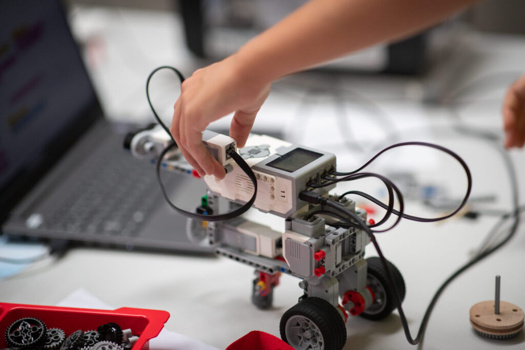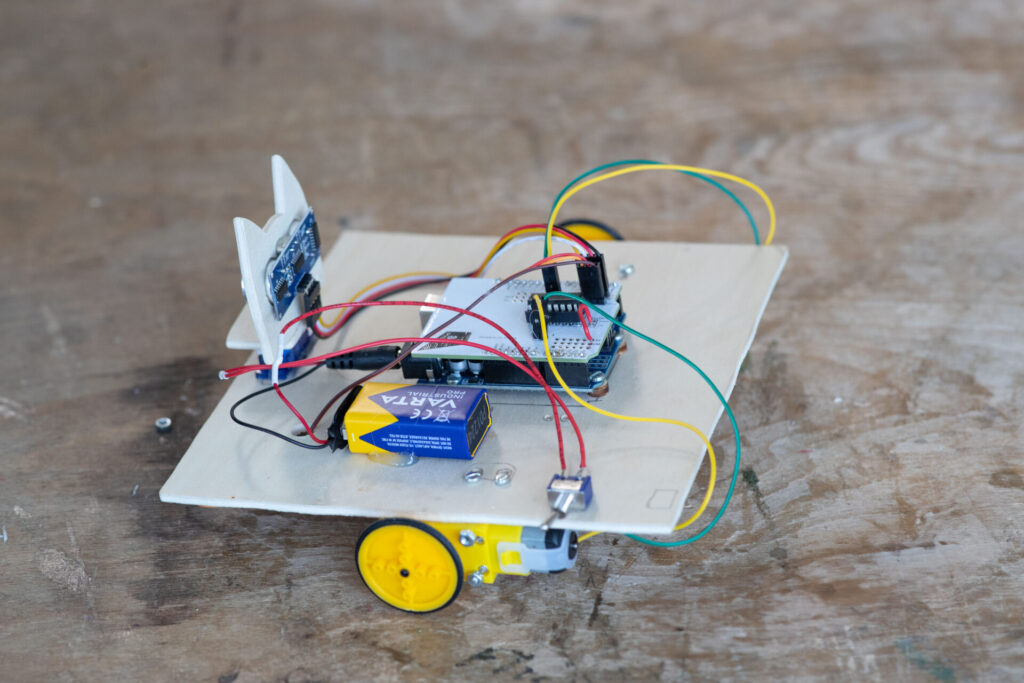 Jedes Kind baute seinen eigenen Vivibot – einen selbstfahrenden, mikrokontrollergesteuerten Roboter. Die Kinder löteten die Bauteile zusammen und konstruierten das Gehäuse für den Roboter. Zudem war das Programmieren der Arduino-Platine Teil des Kurses. - Robotik hautnah: LEGO, Sphero, Drohnen & Roboterhund